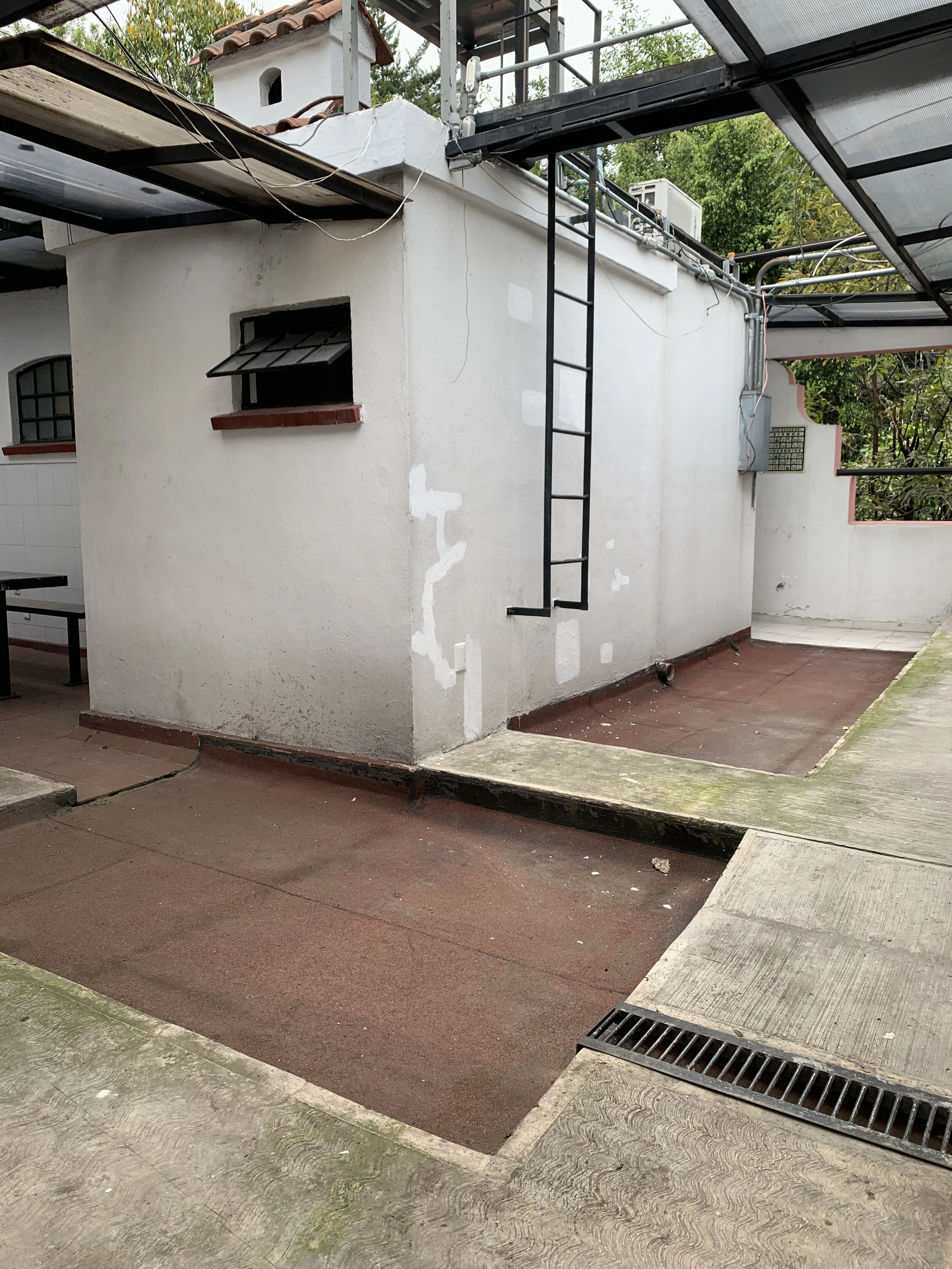 En general se siente llegar a la azotea en lugar de un espacio de trabajo donde pueda llevar clientes, etc. Se ve descuidado y en malas condiciones en cuanto a pintura, limpieza, mantenimiento, etc. Hay manera de darle una mano, un levantamiento a toda la pasada desde la escalera y poner unas plantas/arboles para amenizar el area?