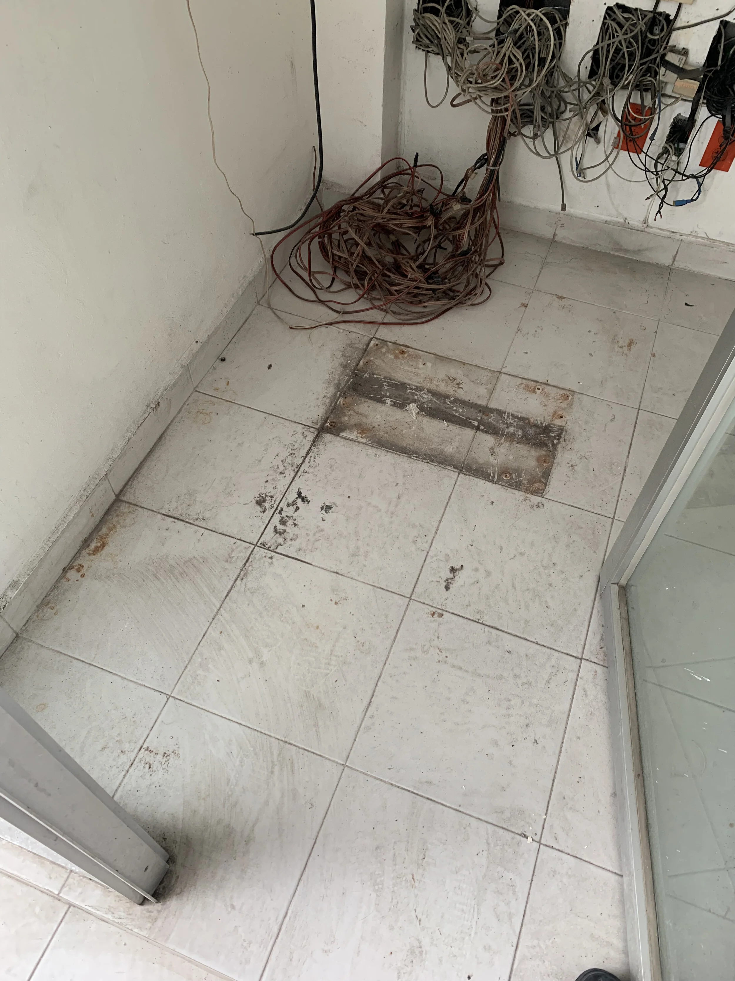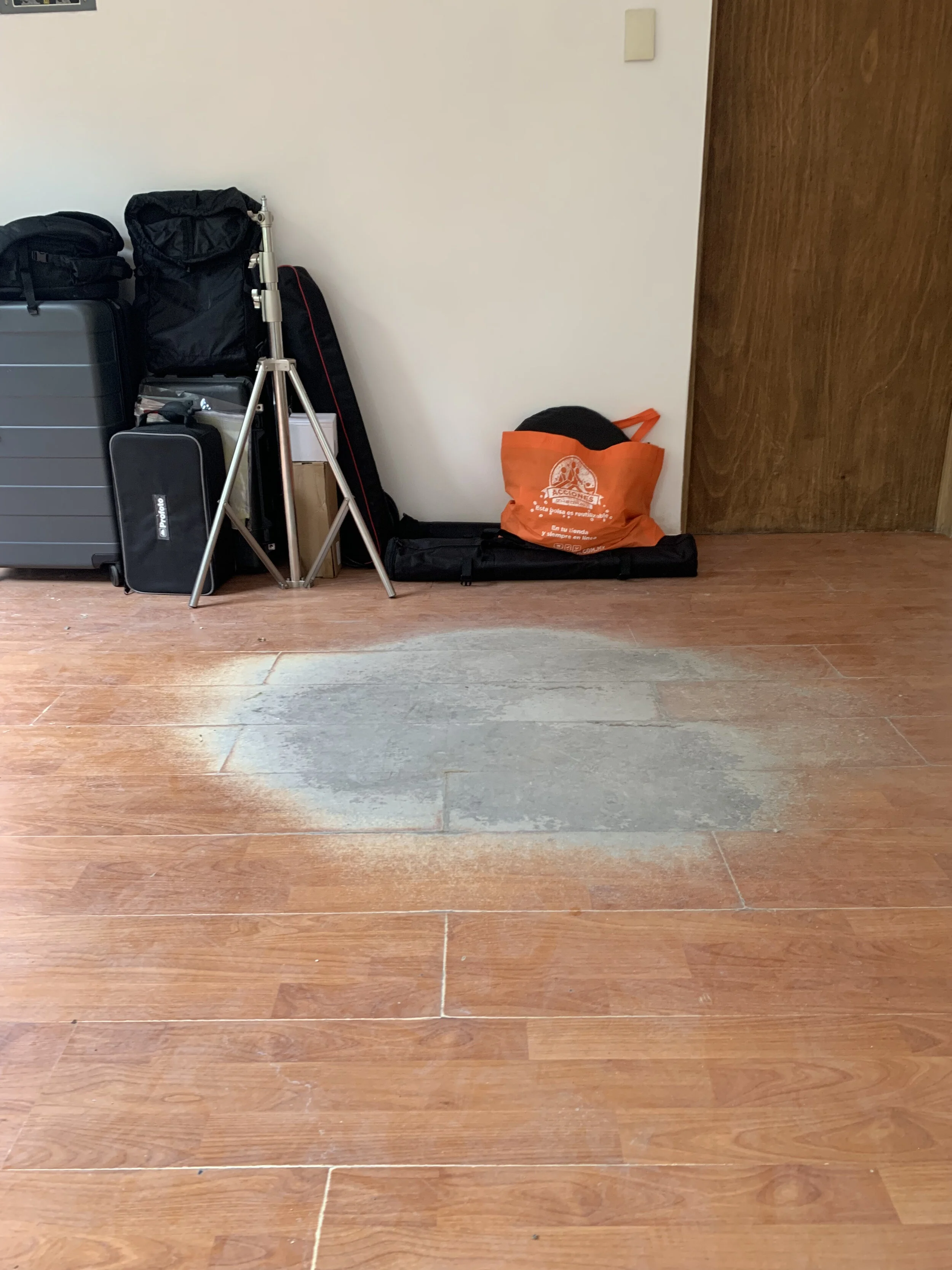 Ya que he podido verlo bien, el piso esta en muy malas condiciones. Lo principal es que esa area grande con la mancha, se ve feo y quita la posibilidad de usar el piso para fotos de espacio mas grande. Le pueden poner cemento pulido?