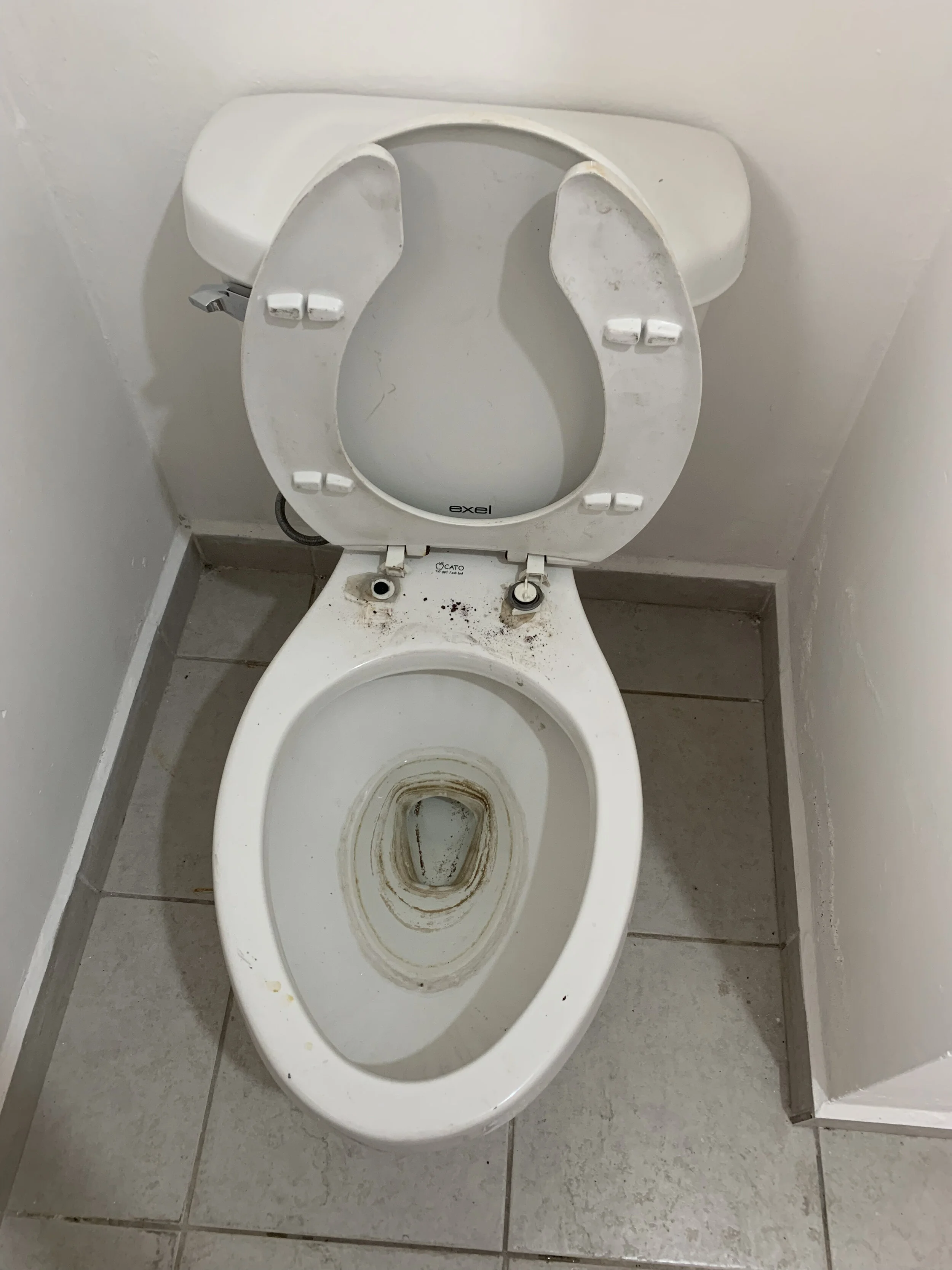 El baño sigue con moho por todas las paredes y con el detalle de la taza.